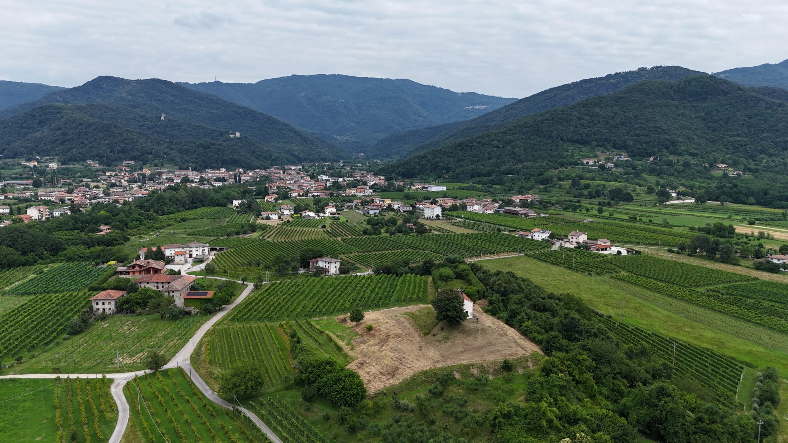 Il paesaggio che circonda l’abitato è un susseguirsi di ondulazioni verdi, un ritmo armonico di vigneti, boschi e prati che cambiano colore a ogni stagione, offrendo una tavolozza cromatica che va dal verde smeraldo della primavera all’ocra bruciato dell’autunno.
