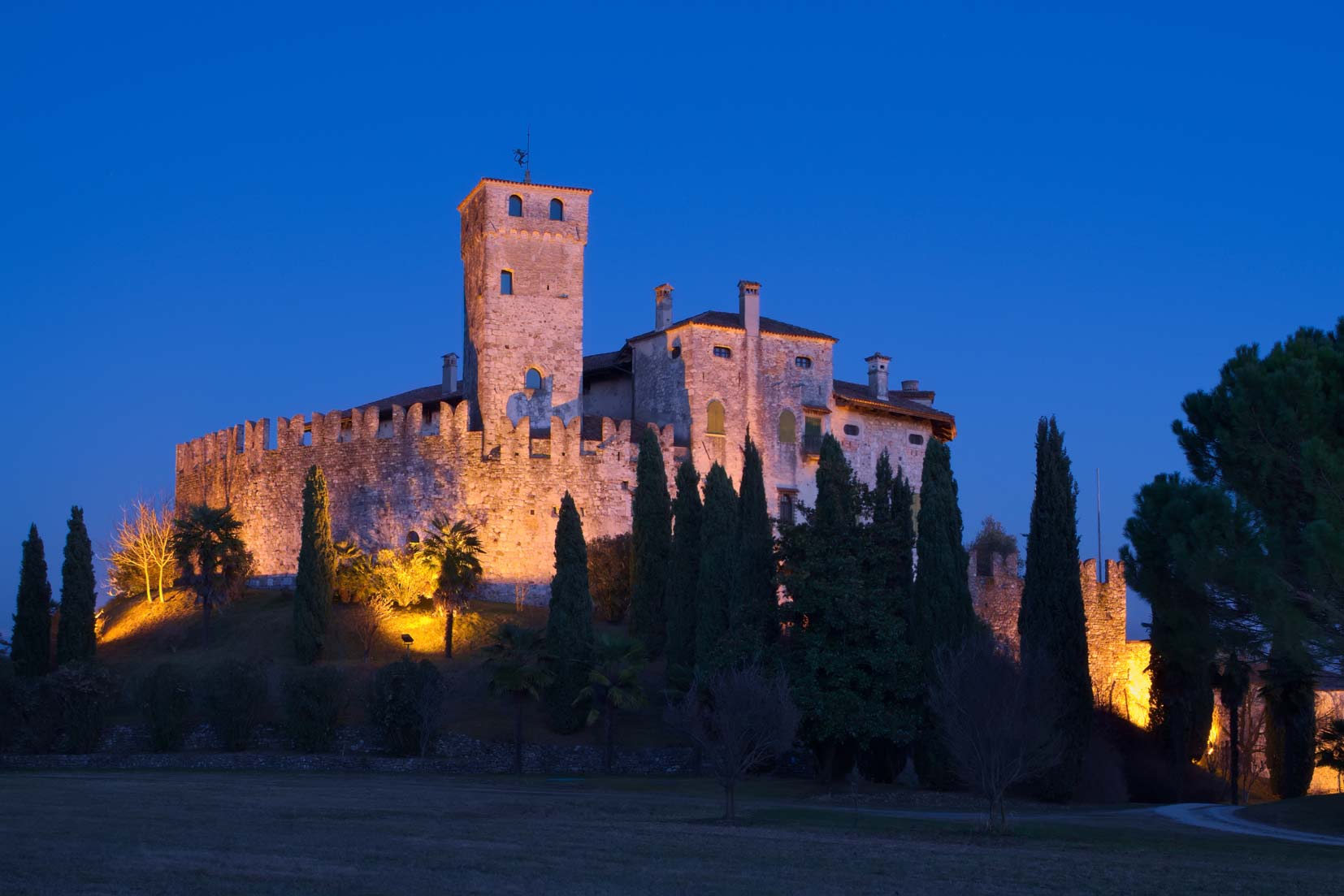 Una volta raggiunta la sommità del colle del castello, la ricompensa è una vista che abbraccia l’intero Friuli, un panorama che permette di comprendere immediatamente la morfologia morenica del territorio, con i suoi dossi e le sue vallette che creano un gioco di ombre e luci unico al mondo.