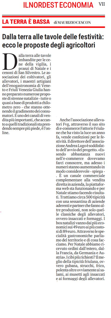 Fattorie Friulane è sul Messaggero Veneto del 16/12!